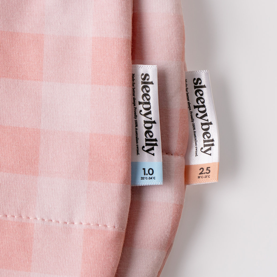 Check the TOG Guide on this page for room-temperature ranges, and use the chart to pick 1.0 or 2.5 TOG. Each Swaddle Sack comes with a printed temperature chart in the pack, so you can double-check at home. Add or remove a light layer underneath to suit the room.