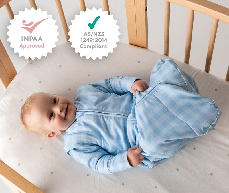 Yes. The range meets AS/NZS 1249:2014 sleepwear safety requirements and is independently approved by INPAA. Always follow safe sleep guidance from Australian experts. The Raising Children’s Network of Australia has resources regarding sleep safety.