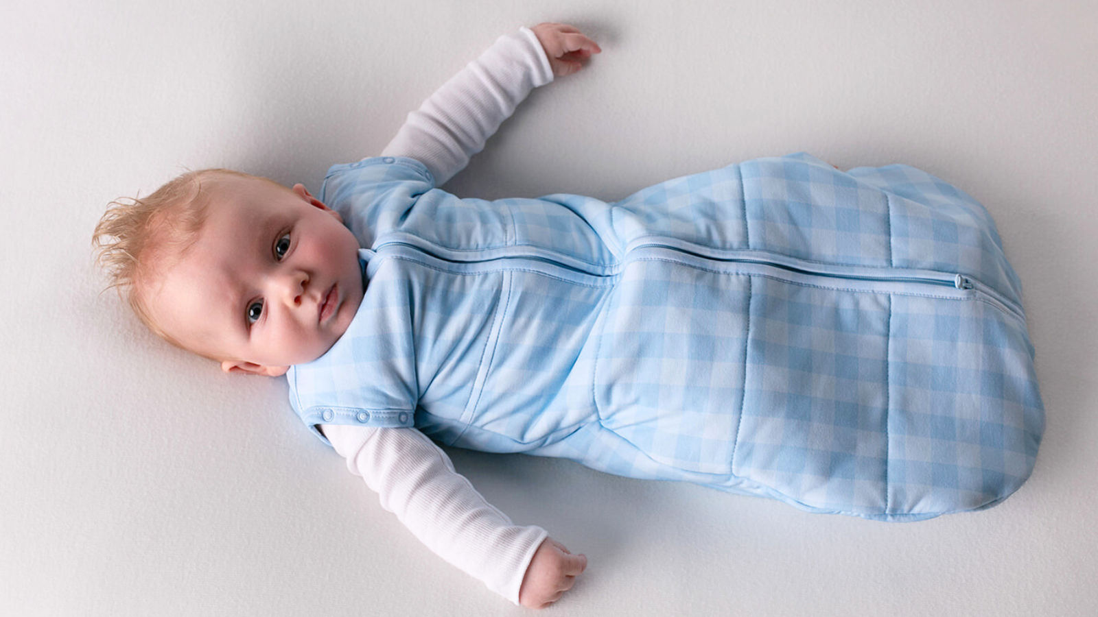 As soon as your baby shows signs of rolling. Open one or both armholes for safe arms-out sleep.